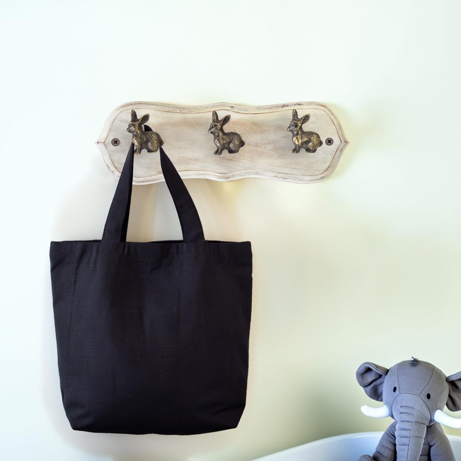 Add charm and functionality to your space with this Rustic Wall Mounted Coat Rack, featuring three antique brass rabbit-shaped hooks on a distressed white wooden base. Perfect for entryways, nurseries, kids' rooms, and mudrooms, this unique piece blends farmhouse aesthetics with whimsical animal-themed decor. The adorable bunny hooks enhance the look of a baby or kids' room, making it both decorative and practical. Easy to install with pre-drilled holes and included nails, it provides a sturdy and stylish storage solution.